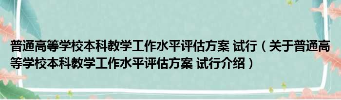 大家好,小钱来为大家解答以上的问题。普通高等学校本科教学工作水平评估方案 试行,关于普通高等学校本科教学工作水平评估方案 试行介绍这个很多人还不知道,现在让我们一起来看看吧!