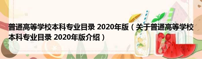 1、 2020年2月21日,教育部发布“普通高等学校本科专业目录(2020年版)”,该专业目录是在《普通高等学校本科专业目录(2012年)》基础上,增补了近年来批准增设的目录外新专业,形成了最新的《普通高等学校本科专业目录(2020年版)》 。
