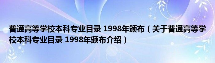大家好,小钱来为大家解答以上的问题。普通高等学校本科专业目录 1998年颁布,关于普通高等学校本科专业目录 1998年颁布介绍这个很多人还不知道,现在让我们一起来看看吧!