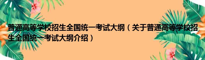 关于普通高等学校招生全国统一考试大纲到此分享完毕,希望能帮助到您。