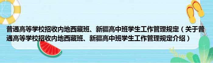 关于普通高等学校招收内地西藏班、新疆高中班学生工作管理规定到此分享完毕,希望能帮助到您。