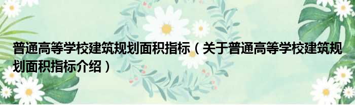 关于普通高等学校建筑规划面积指标到此分享完毕,希望能帮助到您。