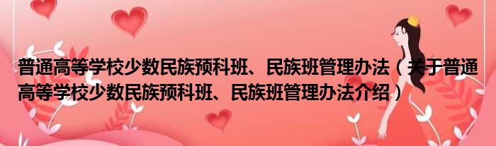 关于普通高等学校少数民族预科班、民族班管理办法到此分享完毕,希望能帮助到您。