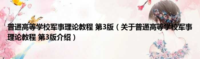 大家好,小钱来为大家解答以上的问题。普通高等学校军事理论教程 第3版,关于普通高等学校军事理论教程 第3版介绍这个很多人还不知道,现在让我们一起来看看吧!