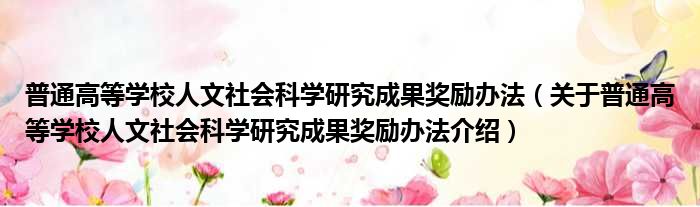 关于普通高等学校人文社会科学研究成果奖励办法到此分享完毕,希望能帮助到您。