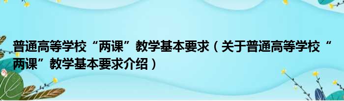 大家好,小钱来为大家解答以上的问题。普通高等学校“两课”教学基本要求,关于普通高等学校“两课”教学基本要求介绍这个很多人还不知道,现在让我们一起来看看吧!