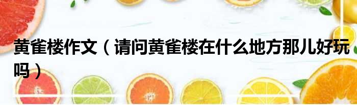 关于黄雀楼作文,请问黄雀楼在什么地方那儿好玩吗的介绍到此结束,希望对大家有所帮助。