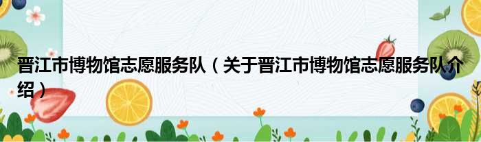 关于晋江市博物馆志愿服务队到此分享完毕,希望能帮助到您。