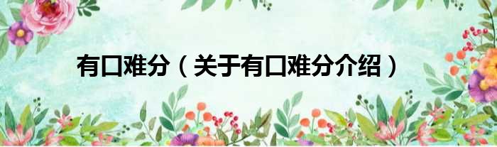免责声明:本文由用户上传,如有侵权请联系删除!大家好,小钱来为大家解答以上的问题。有口难分,关于有口难分介绍这个很多人还不知道,现在让我们一起来看看吧!