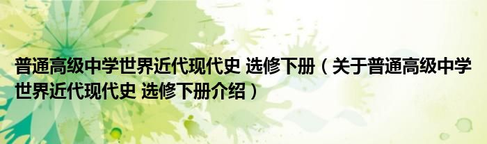 1、 《普通高级中学世界近代现代史(选修)下册》是人民教育出版社出版的图书。