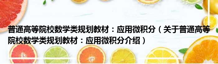 关于普通高等院校数学类规划教材:应用微积分到此分享完毕,希望能帮助到您。
