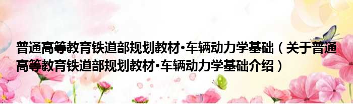 大家好,小钱来为大家解答以上的问题。普通高等教育铁道部规划教材·车辆动力学基础,关于普通高等教育铁道部规划教材·车辆动力学基础介绍这个很多人还不知道,现在让我们一起来看看吧!