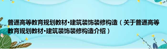 大家好,小钱来为大家解答以上的问题。普通高等教育规划教材·建筑装饰装修构造,关于普通高等教育规划教材·建筑装饰装修构造介绍这个很多人还不知道,现在让我们一起来看看吧!