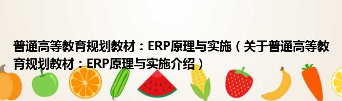 1、 《普通高等教育规划教材:ERP原理与实施》是一本图书。