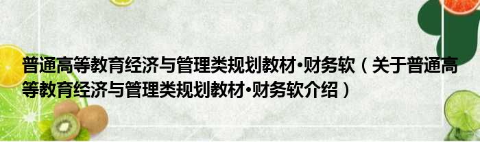 关于普通高等教育经济与管理类规划教材·财务软到此分享完毕,希望能帮助到您。