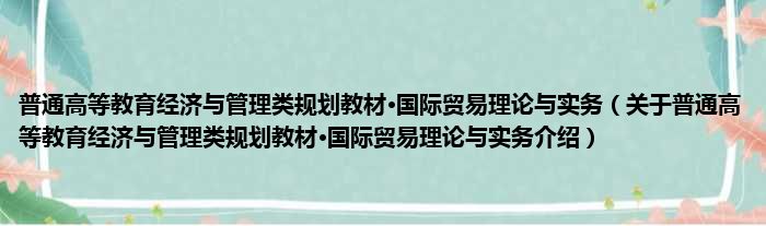 关于普通高等教育经济与管理类规划教材·国际贸易理论与实务到此分享完毕,希望能帮助到您。