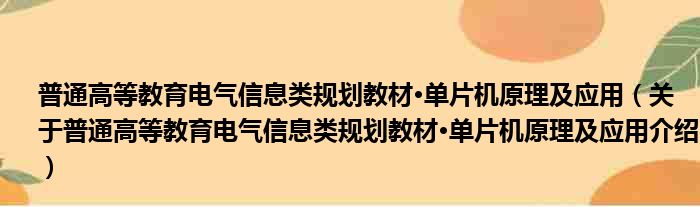 免责声明:本文由用户上传,如有侵权请联系删除!大家好,小钱来为大家解答以上的问题。普通高等教育电气信息类规划教材·单片机原理及应用,关于普通高等教育电气信息类规划教材·单片机原理及应用介绍这个很多人还不知道,现在让我们一起来看看吧!
