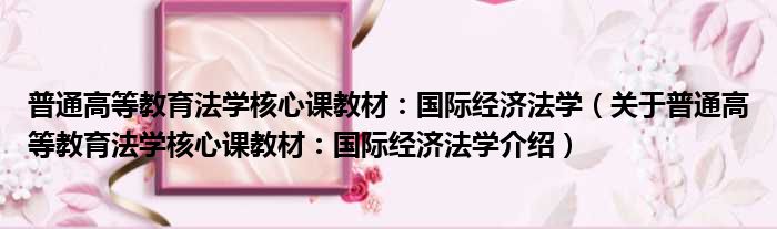 大家好,小钱来为大家解答以上的问题。普通高等教育法学核心课教材:国际经济法学,关于普通高等教育法学核心课教材:国际经济法学介绍这个很多人还不知道,现在让我们一起来看看吧!