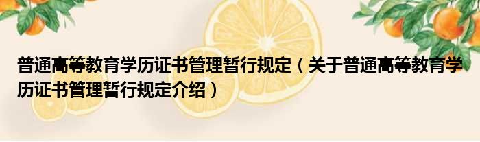 关于普通高等教育学历证书管理暂行规定到此分享完毕,希望能帮助到您。