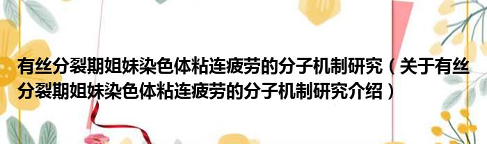 关于有丝分裂期姐妹染色体粘连疲劳的分子机制研究到此分享完毕,希望能帮助到您。