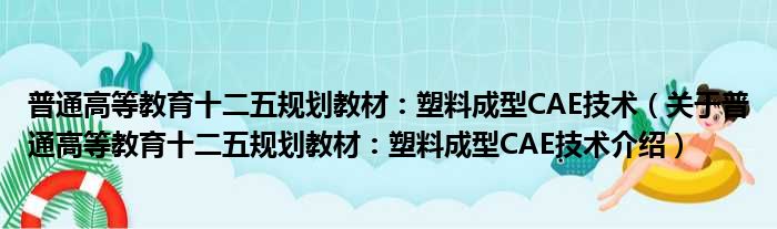 关于普通高等教育十二五规划教材:塑料成型CAE技术到此分享完毕,希望能帮助到您。