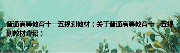 大家好,小钱来为大家解答以上的问题。普通高等教育十一五规划教材,关于普通高等教育十一五规划教材介绍这个很多人还不知道,现在让我们一起来看看吧!