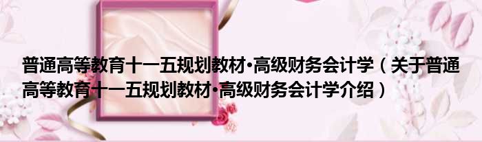 1、 《普通高等教育十一五规划教材·高级财务会计学》是2008年立信会计出版社出版的图书。