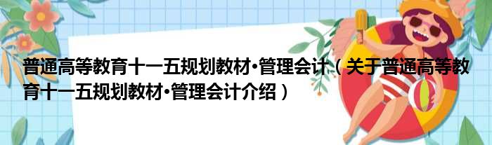 大家好,小钱来为大家解答以上的问题。普通高等教育十一五规划教材·管理会计,关于普通高等教育十一五规划教材·管理会计介绍这个很多人还不知道,现在让我们一起来看看吧!