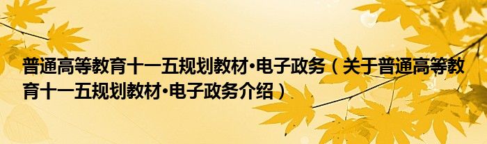 1、 《普通高等教育十一五规划教材·电子政务》是中国科学技术大学出版社出版的图书。