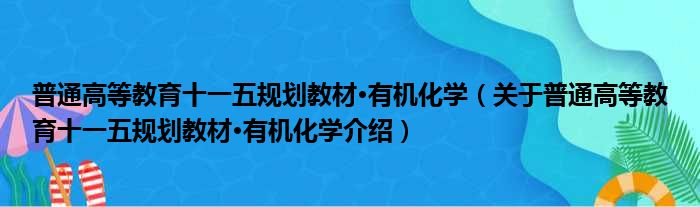 1、 《普通高等教育十一五规划教材·有机化学》是2008年科学出版社出版的图书。