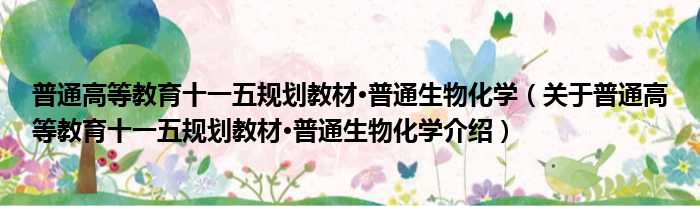 1、 《普通高等教育十一五规划教材·普通生物化学》 是2008年科学出版社出版的图书。