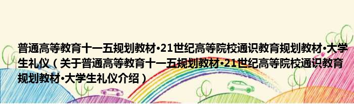 1、 《普通高等教育十一五规划教材·21世纪高等院校通识教育规划教材·大学生礼仪》是2010年5月1日人民邮电出版社出版的图书。