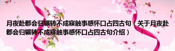关于月夜赴郡会归辗转不成寐触事感怀口占四古句到此分享完毕,希望能帮助到您。