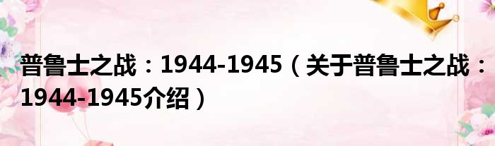 大家好,小钱来为大家解答以上的问题。普鲁士之战:1944-1945,关于普鲁士之战:1944-1945介绍这个很多人还不知道,现在让我们一起来看看吧!