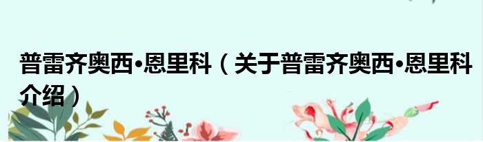 关于普雷齐奥西·恩里科到此分享完毕,希望能帮助到您。