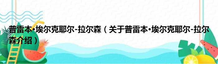 大家好,小钱来为大家解答以上的问题。普雷本·埃尔克耶尔-拉尔森,关于普雷本·埃尔克耶尔-拉尔森介绍这个很多人还不知道,现在让我们一起来看看吧!