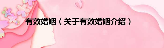 大家好,小钱来为大家解答以上的问题。有效婚姻,关于有效婚姻介绍这个很多人还不知道,现在让我们一起来看看吧!
