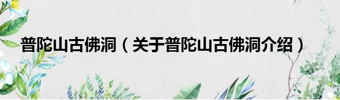 关于普陀山古佛洞到此分享完毕,希望能帮助到您。
