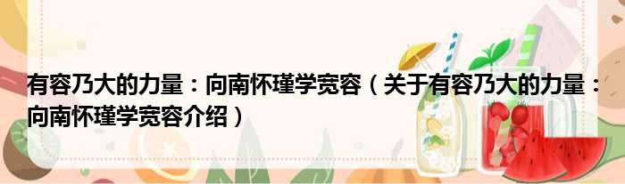 关于有容乃大的力量:向南怀瑾学宽容到此分享完毕,希望能帮助到您。
