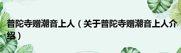 关于普陀寺赠潮音上人到此分享完毕,希望能帮助到您。