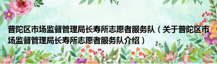关于普陀区市场监督管理局长寿所志愿者服务队到此分享完毕,希望能帮助到您。