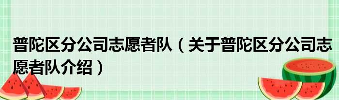大家好,小钱来为大家解答以上的问题。普陀区分公司志愿者队,关于普陀区分公司志愿者队介绍这个很多人还不知道,现在让我们一起来看看吧!