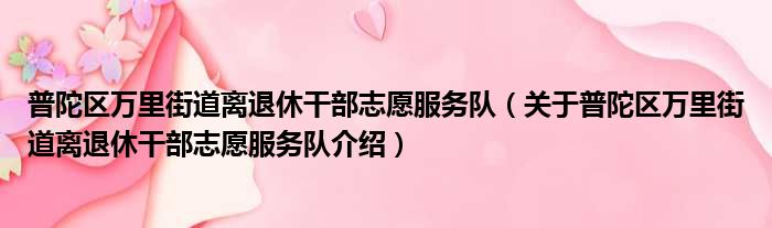 关于普陀区万里街道离退休干部志愿服务队到此分享完毕,希望能帮助到您。