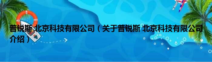 关于普锐斯 北京科技有限公司到此分享完毕,希望能帮助到您。
