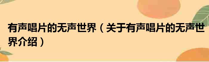 免责声明:本文由用户上传,如有侵权请联系删除!大家好,小钱来为大家解答以上的问题。有声唱片的无声世界,关于有声唱片的无声世界介绍这个很多人还不知道,现在让我们一起来看看吧!