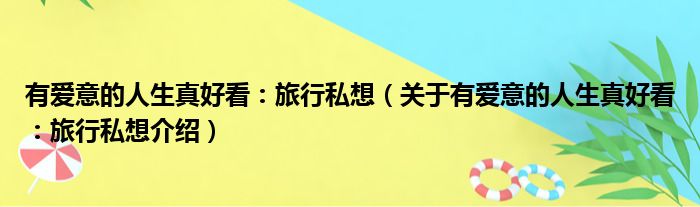 免责声明:本文由用户上传,如有侵权请联系删除!大家好,小钱来为大家解答以上的问题。有爱意的人生真好看:旅行私想,关于有爱意的人生真好看:旅行私想介绍这个很多人还不知道,现在让我们一起来看看吧!