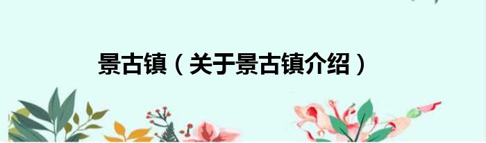 大家好,小钱来为大家解答以上的问题。景古镇,关于景古镇介绍这个很多人还不知道,现在让我们一起来看看吧!