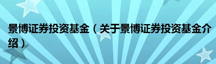 关于景博证券投资基金到此分享完毕,希望能帮助到您。