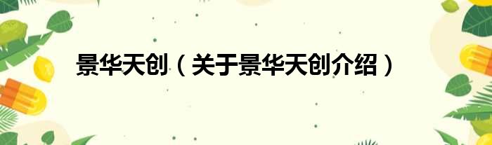 免责声明:本文由用户上传,如有侵权请联系删除!大家好,小钱来为大家解答以上的问题。景华天创,关于景华天创介绍这个很多人还不知道,现在让我们一起来看看吧!