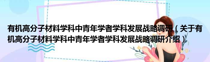 关于有机高分子材料学科中青年学者学科发展战略调研到此分享完毕,希望能帮助到您。